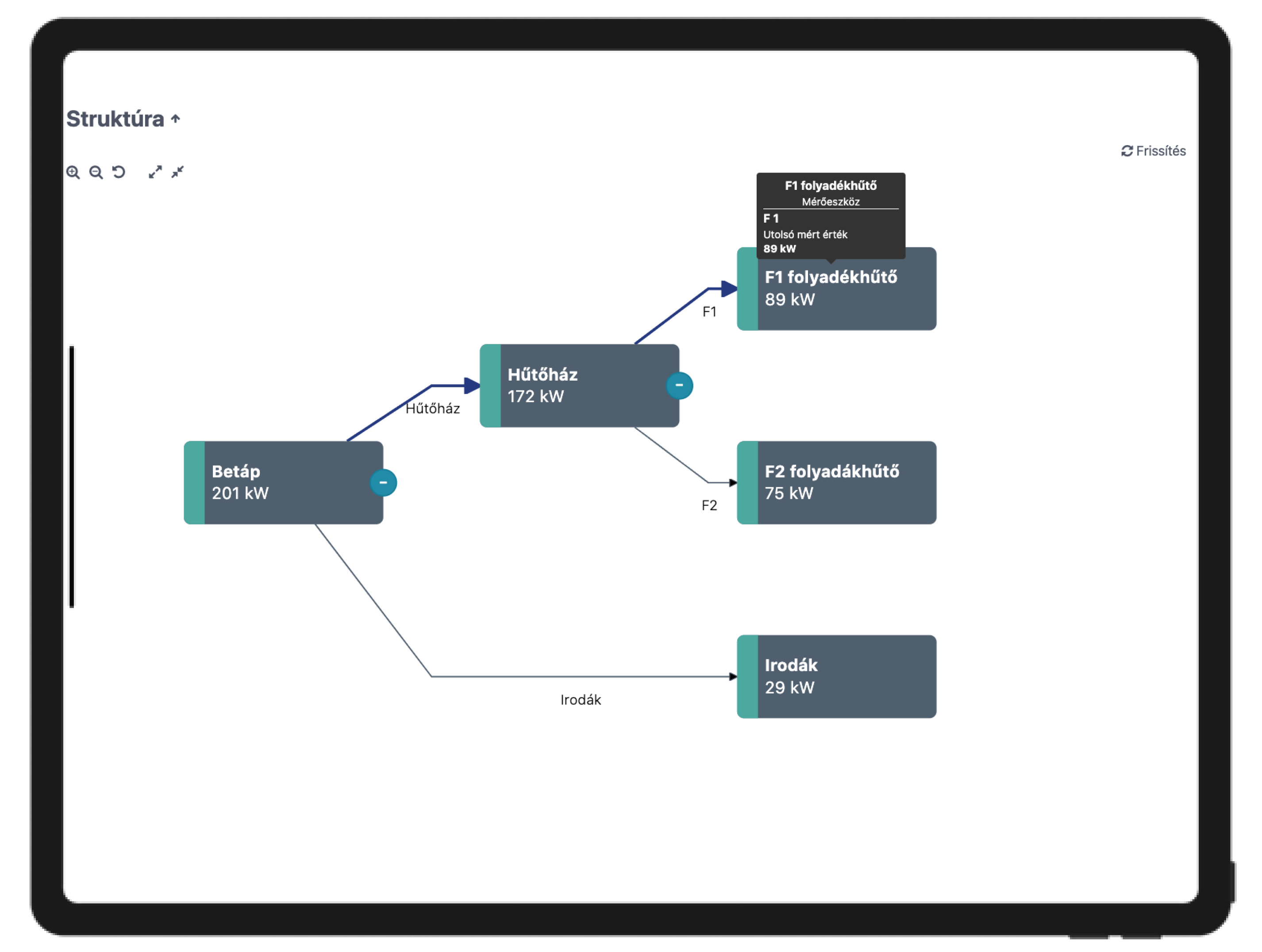 - Mérni kell az önállóan mérendő berendezések figyelmen kívül hagyása mellett az egy betáplálási ponton keresztül megtáplált és technológiai sorra állított berendezéseket (pl.: gép, gépsor, gyártósor, üzemcsarnok, de akár épület is), amennyiben a legnagyobb, egyidejű teljesítményigény meghaladja a 100 kW-ot.